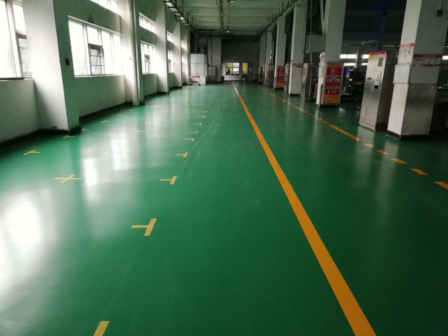 湖北新葉煙草薄片車間地面環(huán)氧自流平+水性聚氨酯罩面地坪漆...